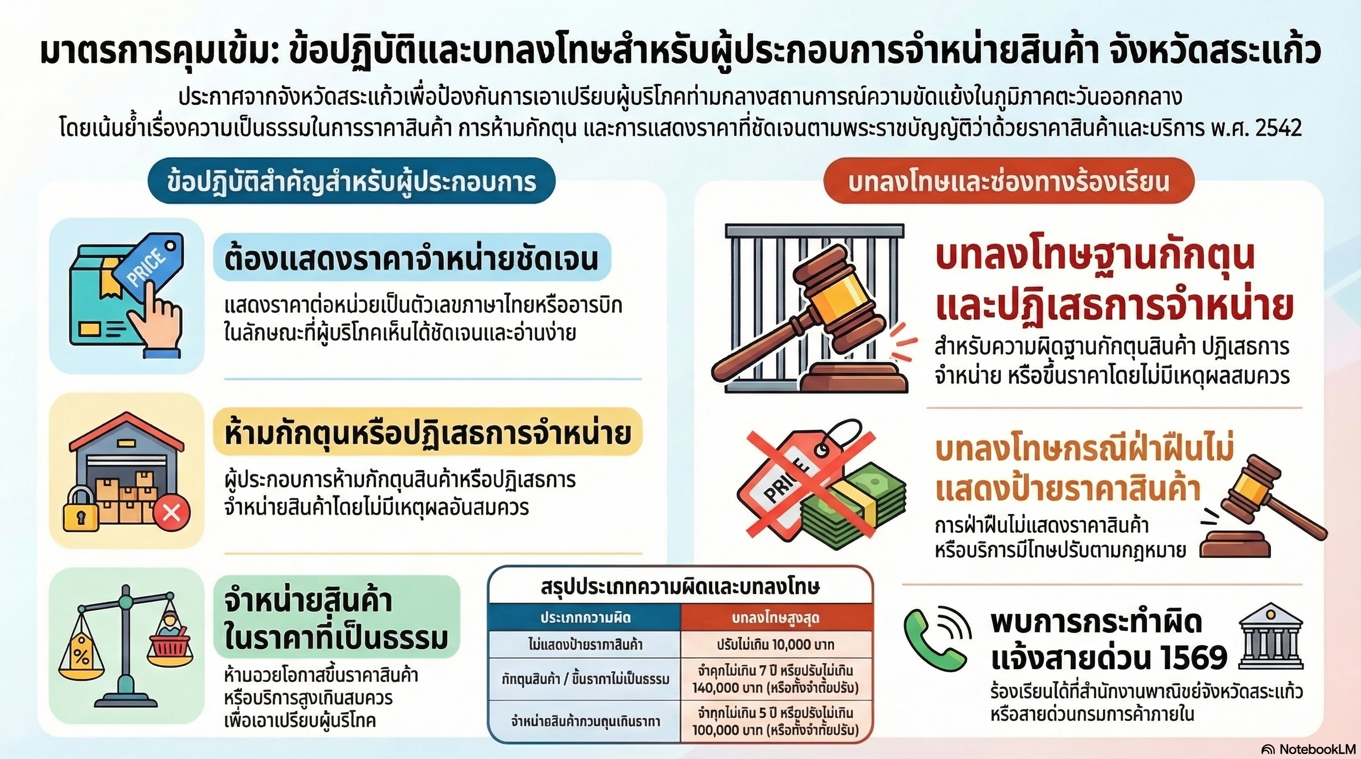 แจ้งเตือนผู้ประกอบการห้ามฉวยโอกาสขึ้นราคาสินค้า กักตุนสินค้า ปฏิเสธการจำหน่ายสินค้า หรือจำหน่ายในราคาที่สูงเกินสมควร และปิดป้ายแสดงราคาสินค้า