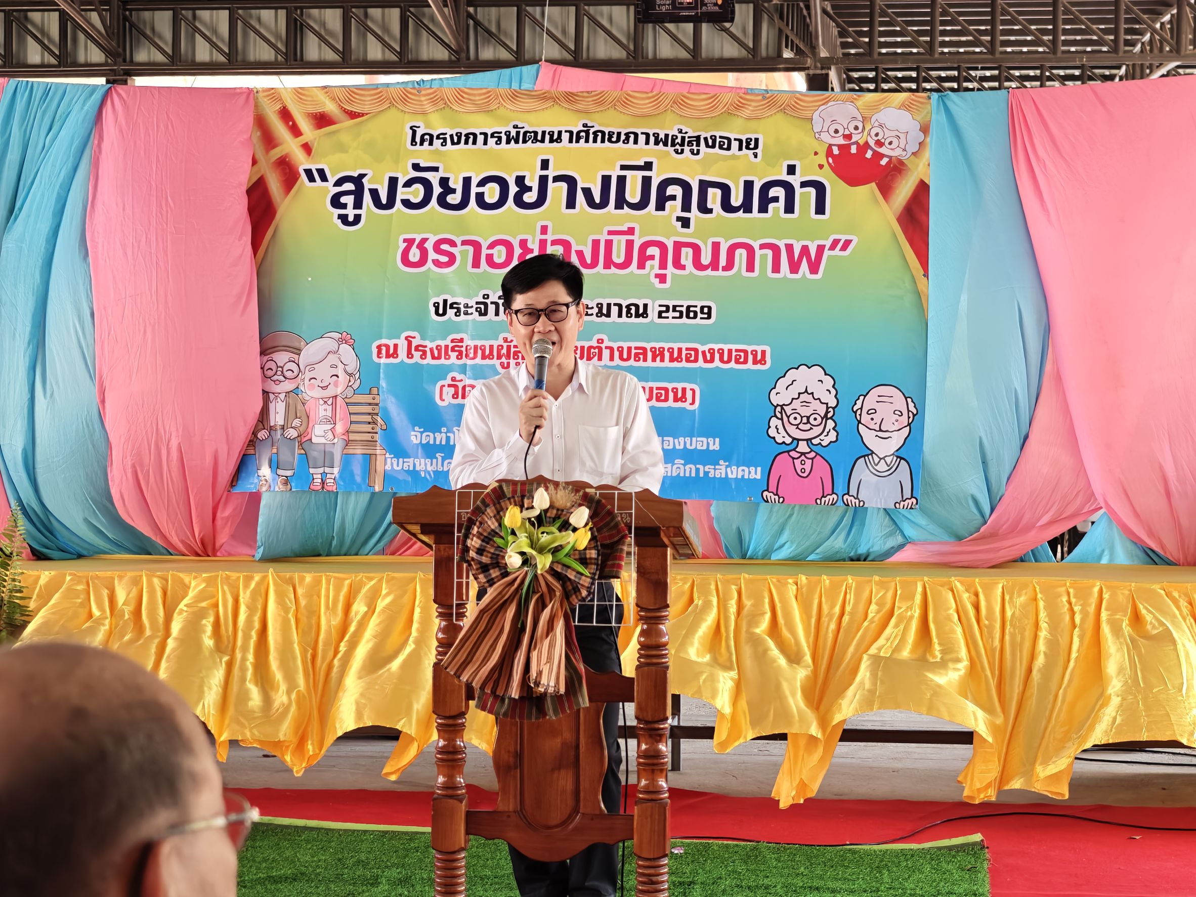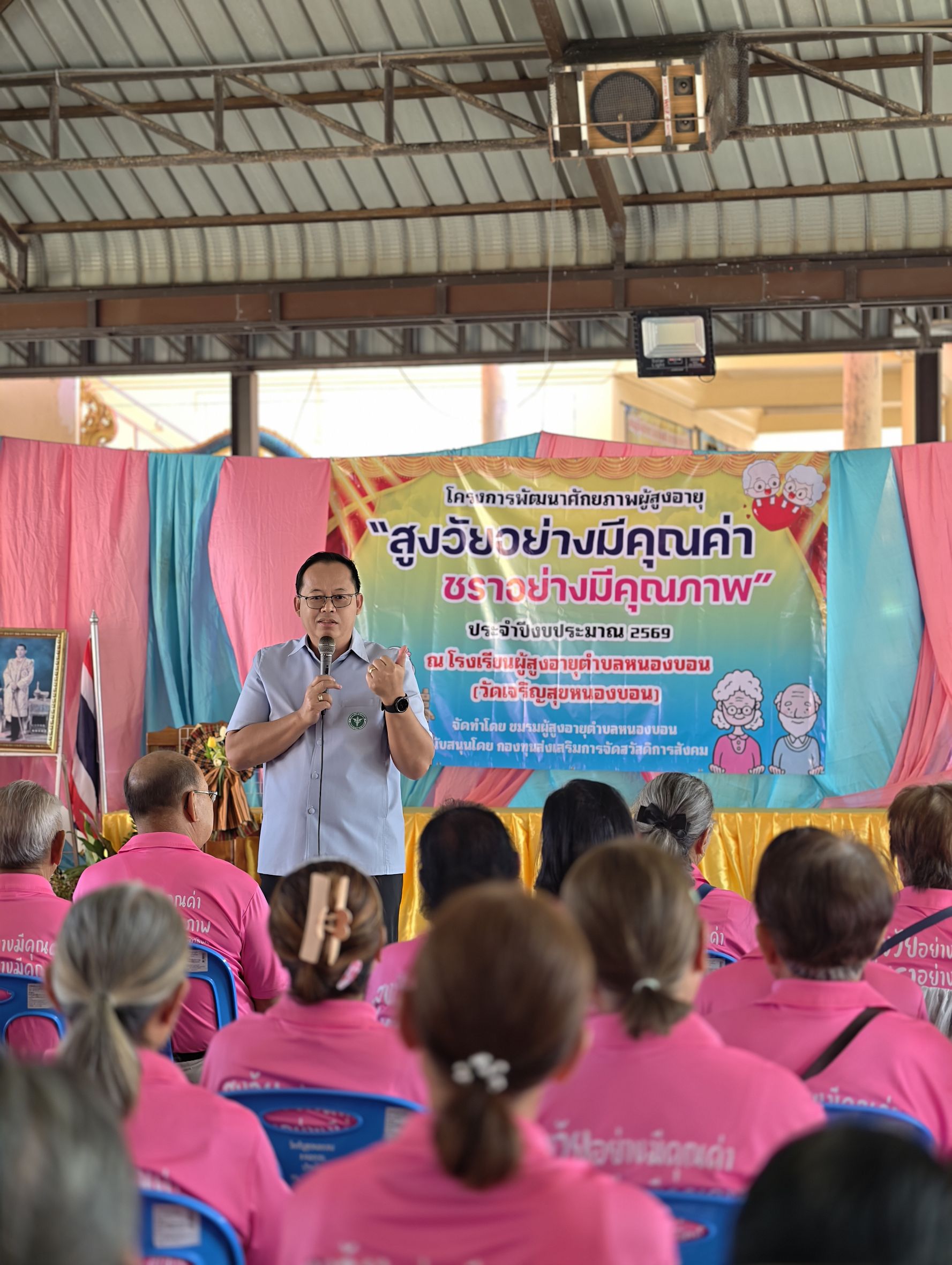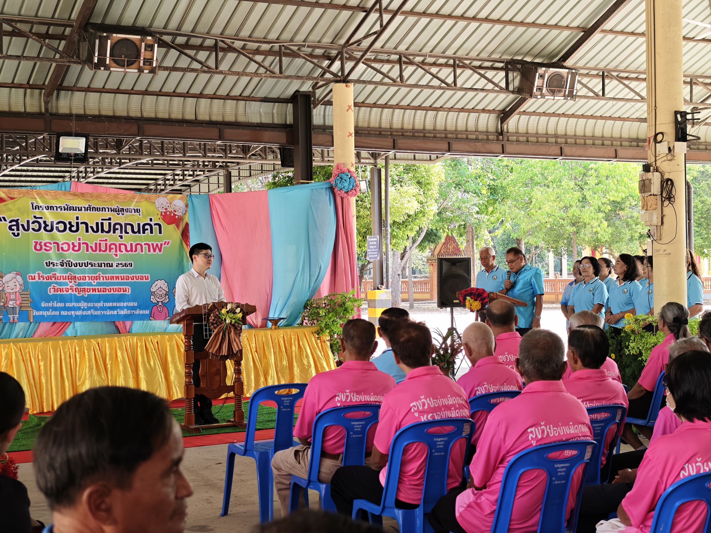 วันอังคารที่ 10 มีนาคม 2569 นายจักรกฤษณ์ ธนะนพรัตน์ นายอำเภอเมืองสระแก้ว จังหวัดสระแก้ว เป็นประธานเปิดโครงการพัฒนาศักยภาพผู้สูงอายุ “สูงวัยอย่างมีคุณค่า ชราอย่างมีคุณภาพ” โดยมีนางสาวขวัญเรือน ชาญชัย นายองค์การบริหารส่วนตำบลหนองบอน นายธีรวุฒิ ไชยต้นเทือก ปลัดองค์การบริหารส่วนตำบลหนองบอน หัวหน้าส่วนราชการ และเจ้าหน้าที่เข้าร่วมพิธีเปิดโครงการ ทั้งนี้เพื่อให้ผู้สูงอายุในสังคม ได้มีกิจกรรมทำร่วมกัน มีการพบปะพูดคุยแลกเปลี่ยนความคิด เพื่อเป็นการพัฒนาศักยภาพของผู้สูงอายุ “สูงวัยอย่างมีคุณค่า ชราอย่างมีคุณภาพ”