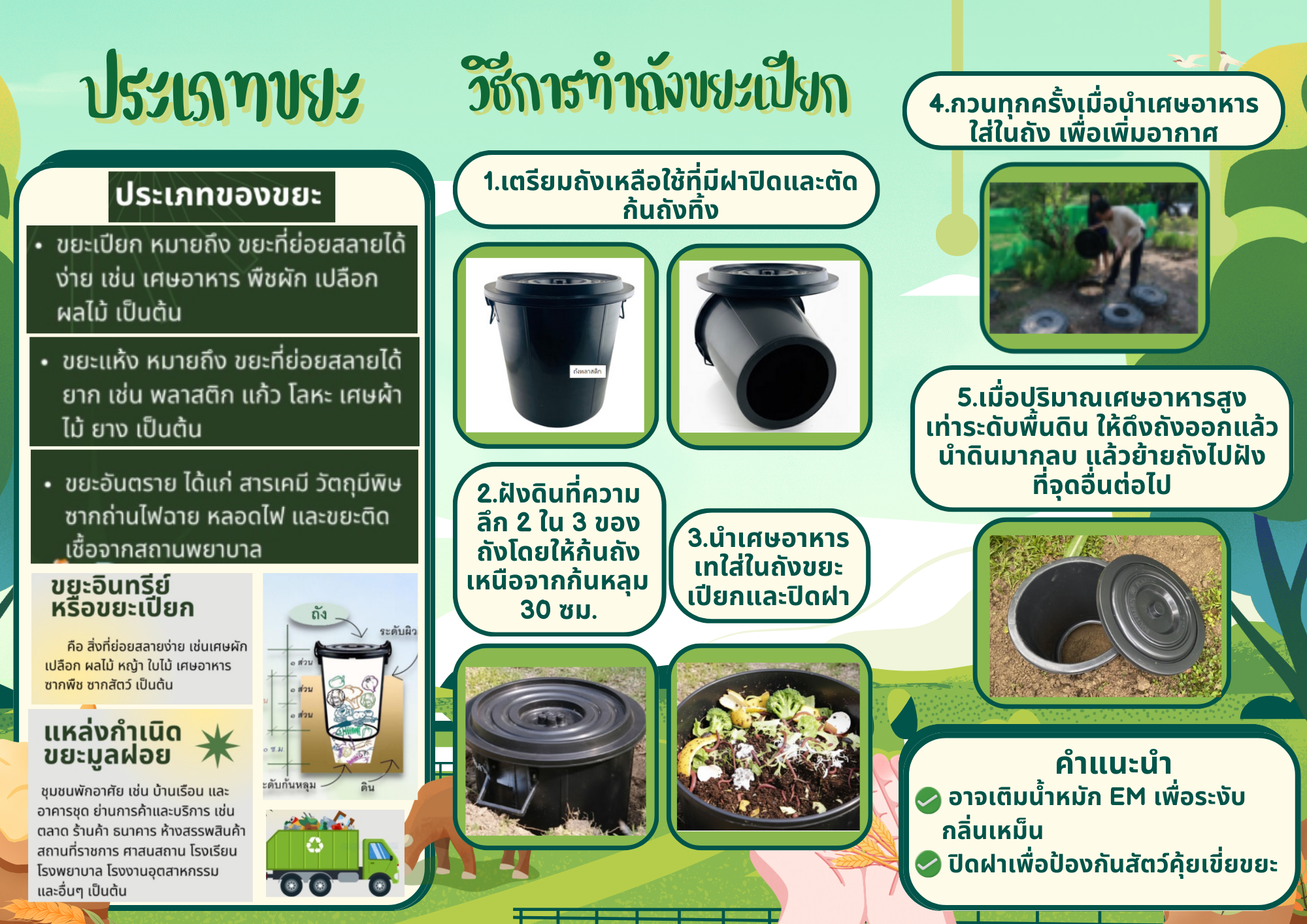 องค์การบริหารส่วนตำบลหนองบอน อำเภอเมืองสระแก้ว จังหวัดสระแก้ว ได้จัดทำแผนองค์ความรู้เรื่อง ประโยชน์ขยะเปียก ลดโลกร้อน ประเภทขยะ และวิธีการทำถังขยะเปียก เพื่อให้ประชาชนในตำบลได้เข้าใจถึงการทำขยะเปียก รวมถึงประโยชน์ที่จะได้รับและวิธีการคัดแยกขยะเบื้องต้น