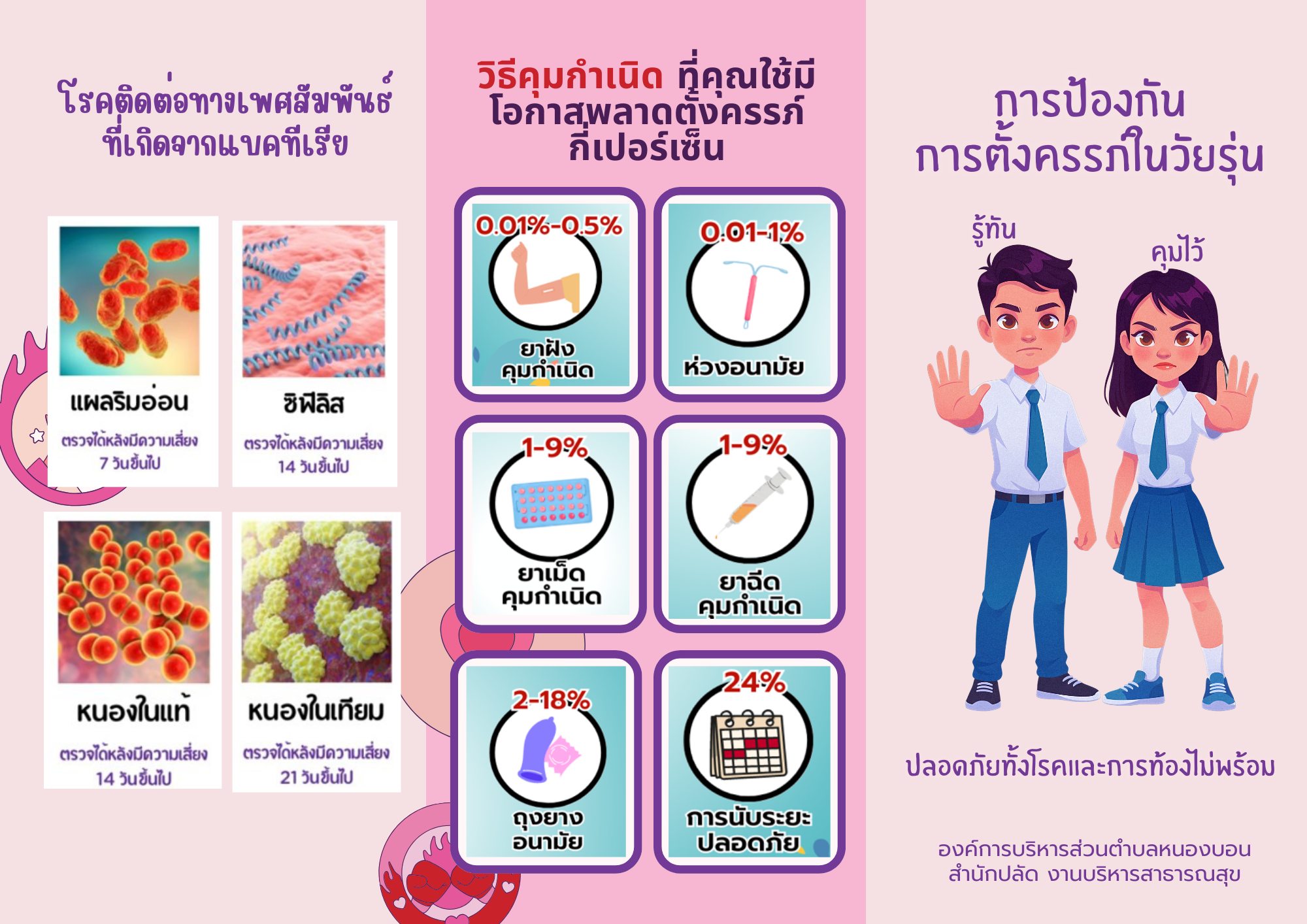 องค์การบริหารส่วนตำบลหนองบอนได้จัดทำแผนภาพเพื่อให้เยาวชน วัยรุ่น ได้รู้จักการป้องกันที่อาจก่อให้เกิดการตั้งครรภ์ไม่พร้อมในวัยรุ่น และสร้างความเข้าใจเกี่ยวกับการดูแลและป้องกันตัวเองในยุคปัจจุบัน